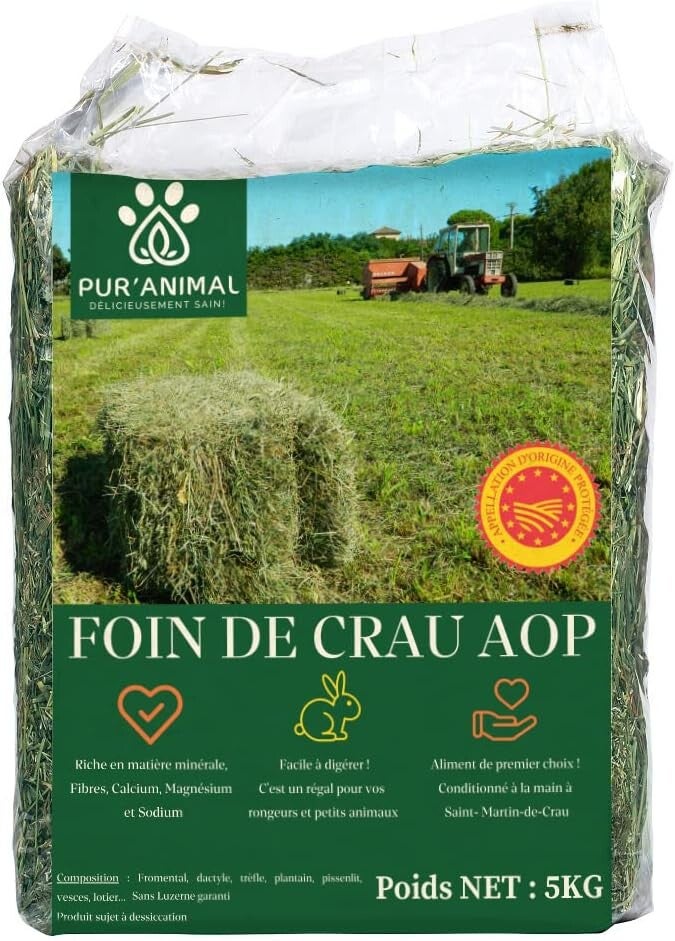 - PUR'ANIMAL - Foin Crau AOP 5KG pour Lapins et Petits Rongeurs, Foin de Lapin, Aliment pour Lapins, Cochon d'Inde...